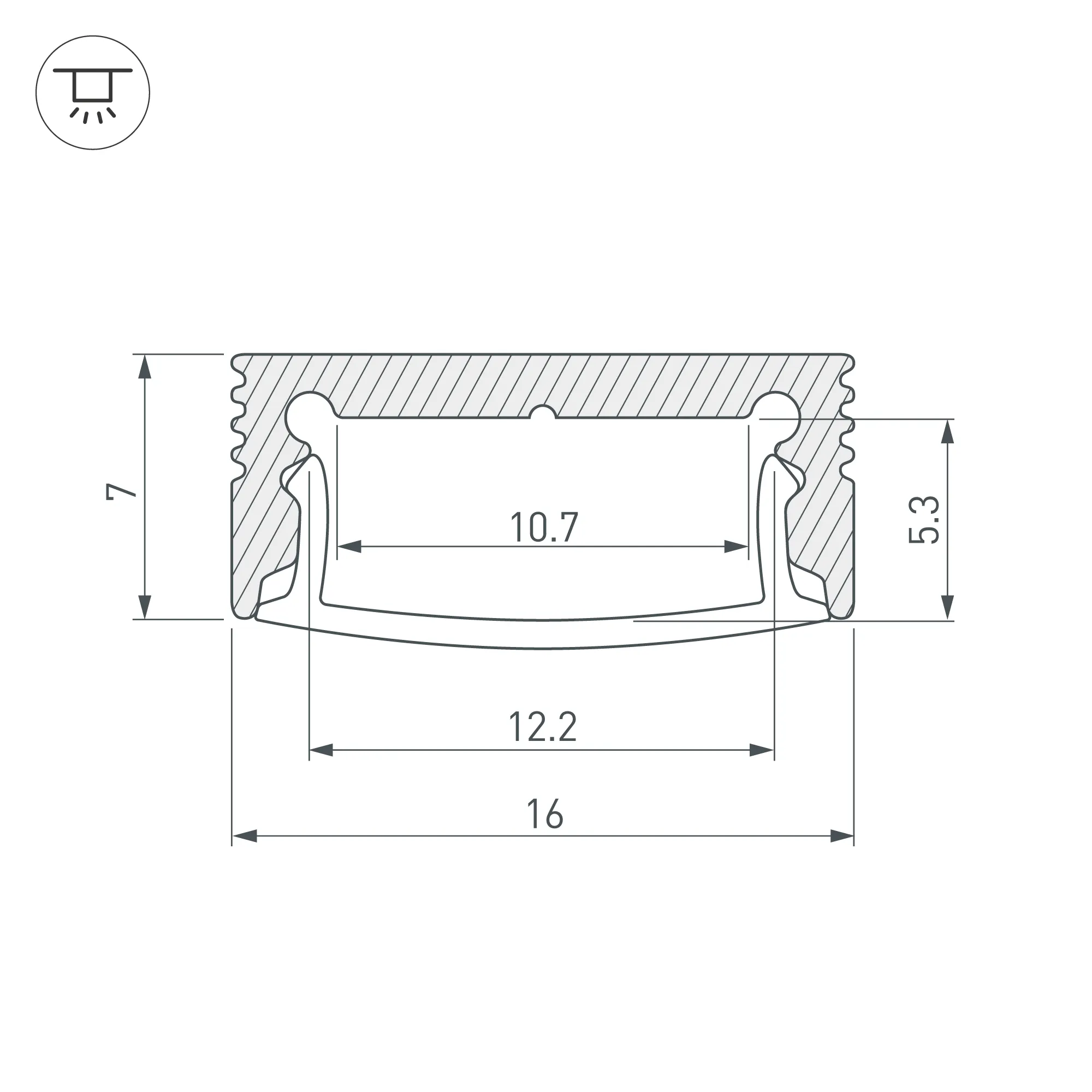 Алюминиевый анодированный профиль для светодиодных лент и линеек. Габаритные размеры (L×W×H): 3000x16x7 мм. Ширина площадки для ленты 10 мм. Экраны, заглушки и другие аксессуары приобретаются отдельно. Цена за 1 метр.