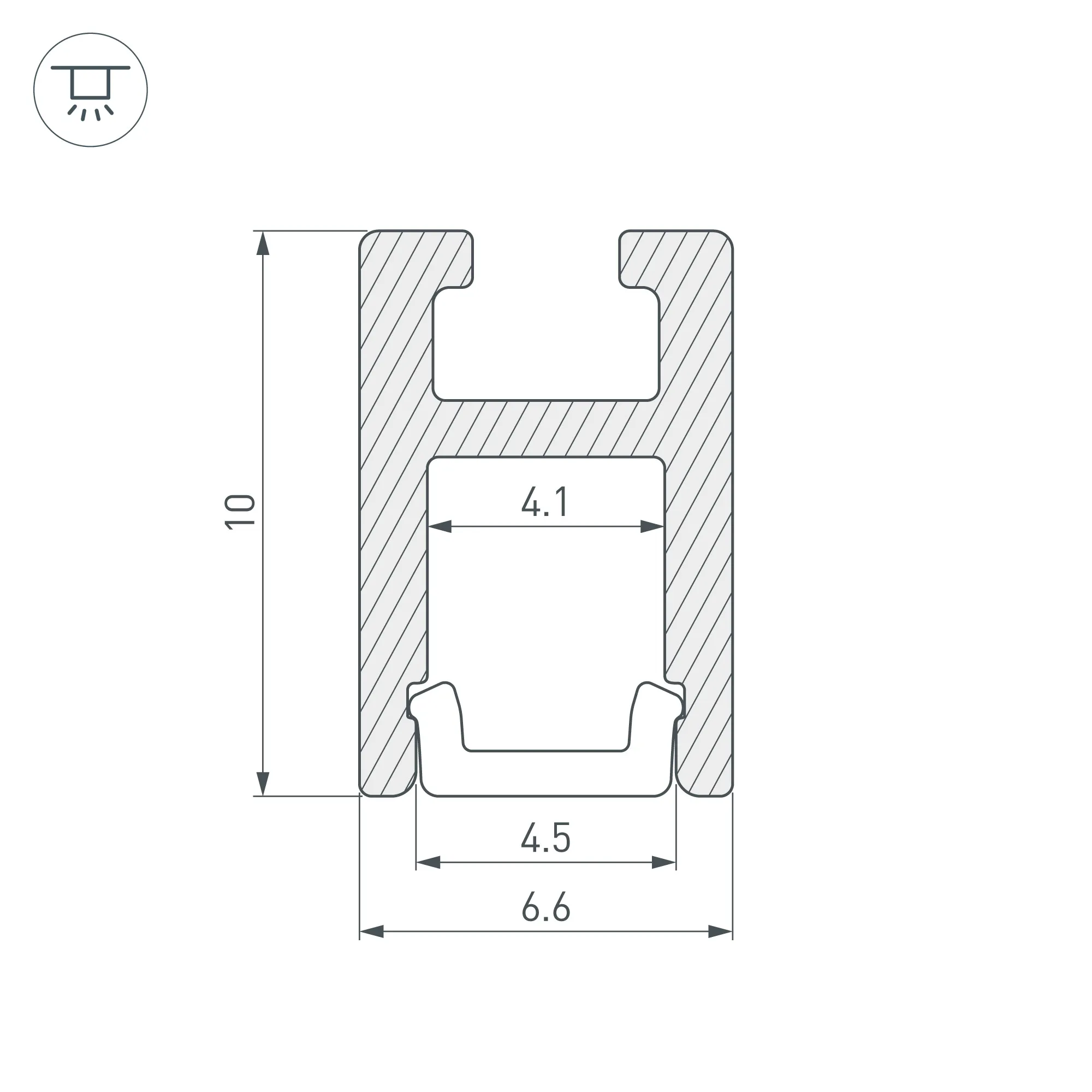 Алюминиевый анодированный профиль для светодиодных лент и линеек. Габаритные размеры (L×W×H): 2000x6,6x10 мм (с экраном). Ширина площадки для ленты 4,1 мм. Экраны, заглушки и другие аксессуары приобретаются отдельно. Рекомендуем использовать с лентой шириной не более 3,5 мм. Цена за 1 метр.