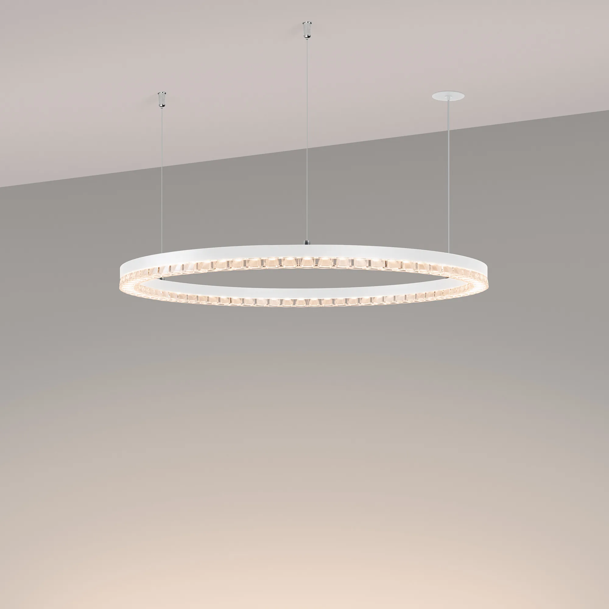 Под заказ. Подвесной светильник. Мощность 36 Вт, св. поток 2900 лм, 80-95 лм/Вт, теплый 3000K, CRI>90, угол 45°, напряжение питания 230 В. Белый круглый корпус из алюминия, экран PMMA, степень защиты IP20. Размер: диаметр 650 мм, высота 34 мм, ширина профиля 30 мм, размер чаши: диаметр 65 мм, высота 26 мм. Монтаж подвесной, длина подвеса 1200 мм, тип чаши встраиваемый, диаметр установочного отверстия чаши 60 мм. Драйвер 27-38 В, 1050 мА. Пульсация < 0,3 %.